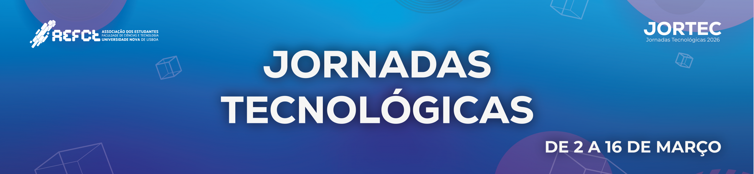 A Associação dos Estudantes da NOVA FCT tem o prazer de anunciar a 27.ª edição das Jornadas Tecnológicas da Faculdade de Ciências e Tecnologia da Universidade Nova de Lisboa (JorTec), que decorrem entre 2 e 16 de março de 2026.